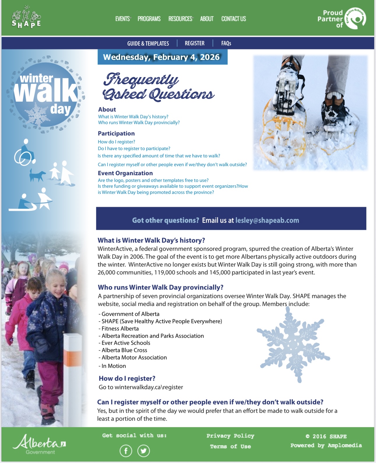What does your Winter Walk Day look like? Send us stories, photos or video of what you’ve got planned and the event itself: lesley@shapeab.ca